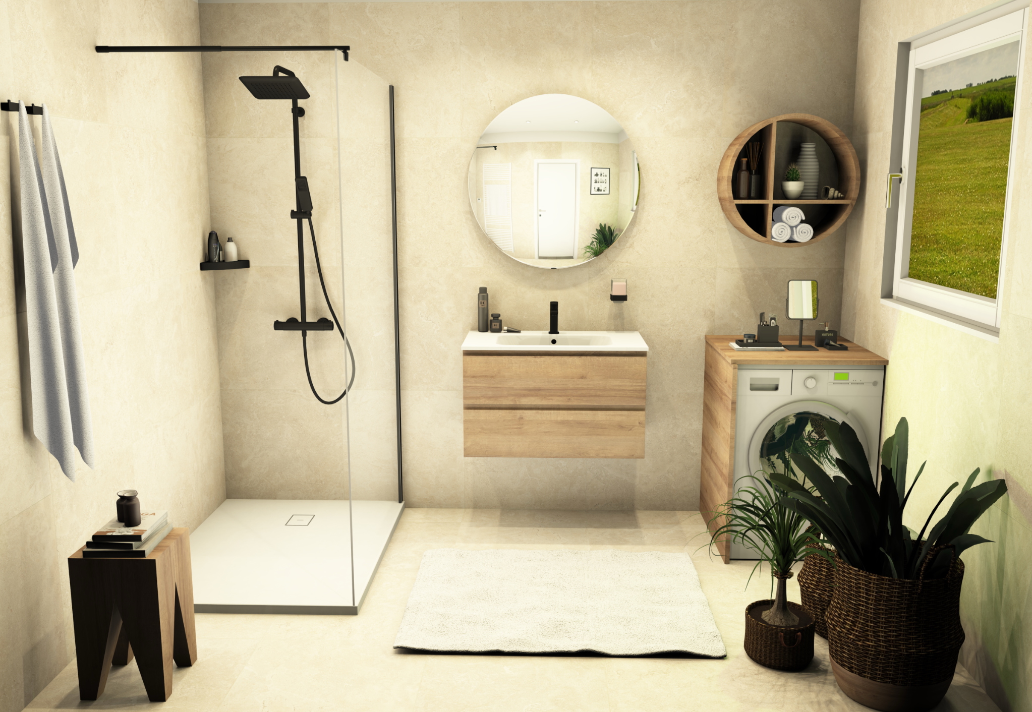 OASIS fängt das Gefühl eines Sommermorgens ein – mit warmen Beigetönen, natürlichem Licht und sanften Holzakzenten. Ein Raum, der atmet. Ein Rückzugsort, in dem Natur und Design miteinander verschmelzen. Für alle, die Ruhe nicht suchen, sondern gestalten.
