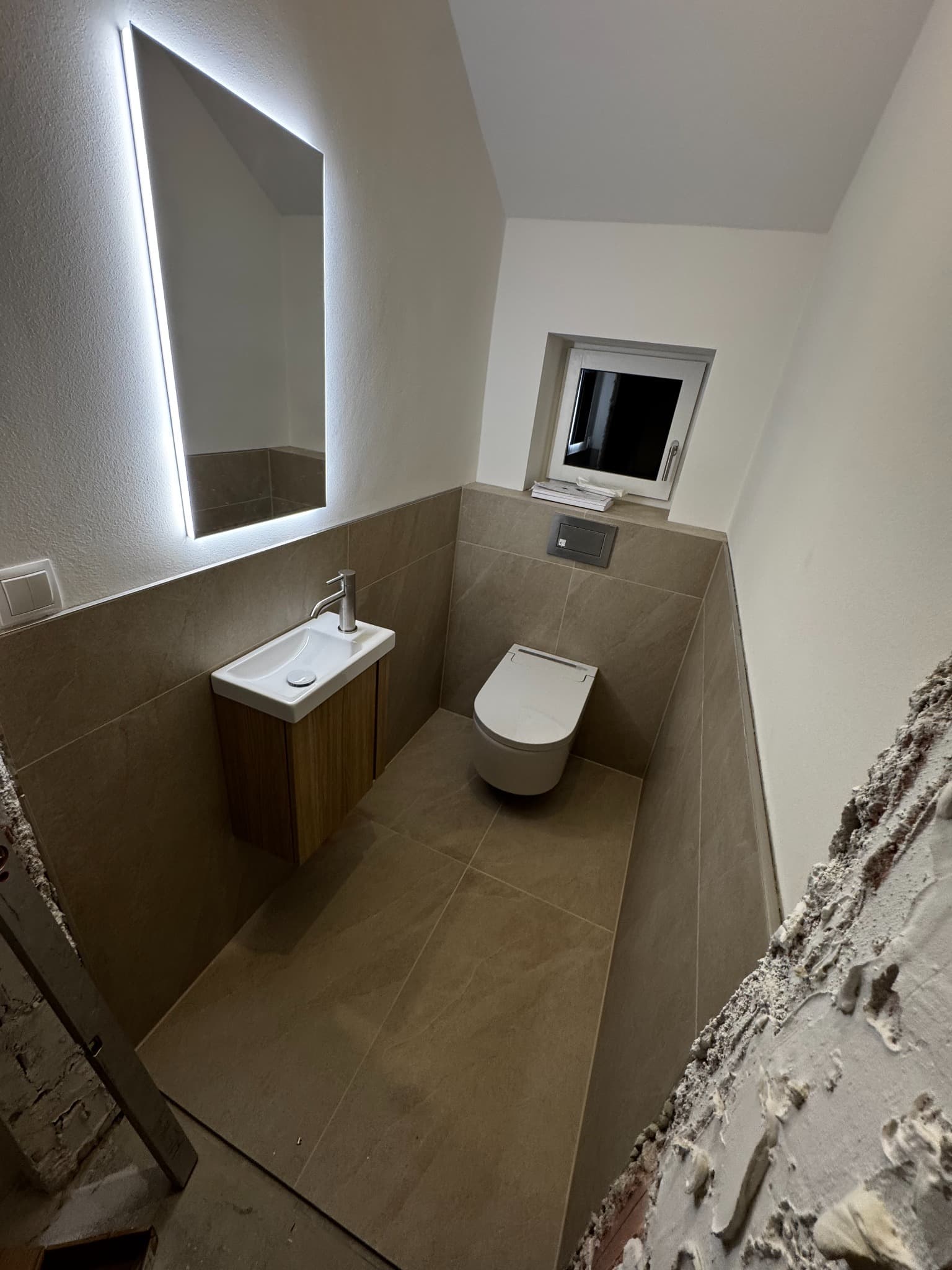 Bei diesen Projekt handelt es sich um eine umfassende Badmodernisierung mit dem Ziel, ein zeitloses, ruhiges und funktional optimiertes Badezimmer zu schaffen. Ausgangspunkt war ein stark veraltetes Bad mit klassischen Fliesen aus vergangenen Jahrzehnten, beengter Raumwirkung und fehlendem Komfort.