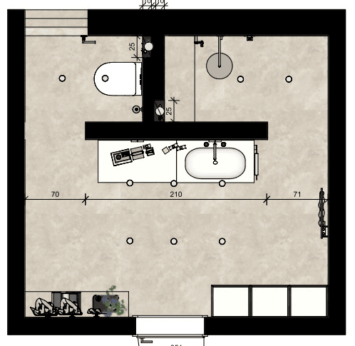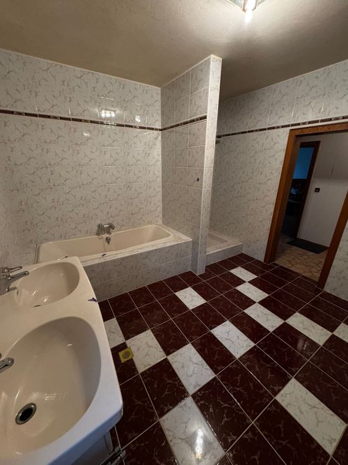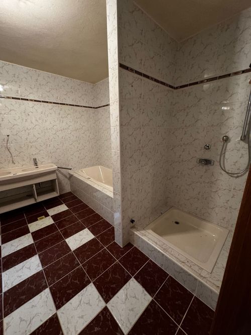 Das ursprüngliche Badezimmer aus den 1980ern war geprägt von dunklen Fliesen, veralteter Sanitärtechnik und einem gedrungenen Raumgefühl. Die Modernisierung war zwingend notwendig, um Komfort, Funktionalität und ein zeitgemäßes Design zu ermöglichen.