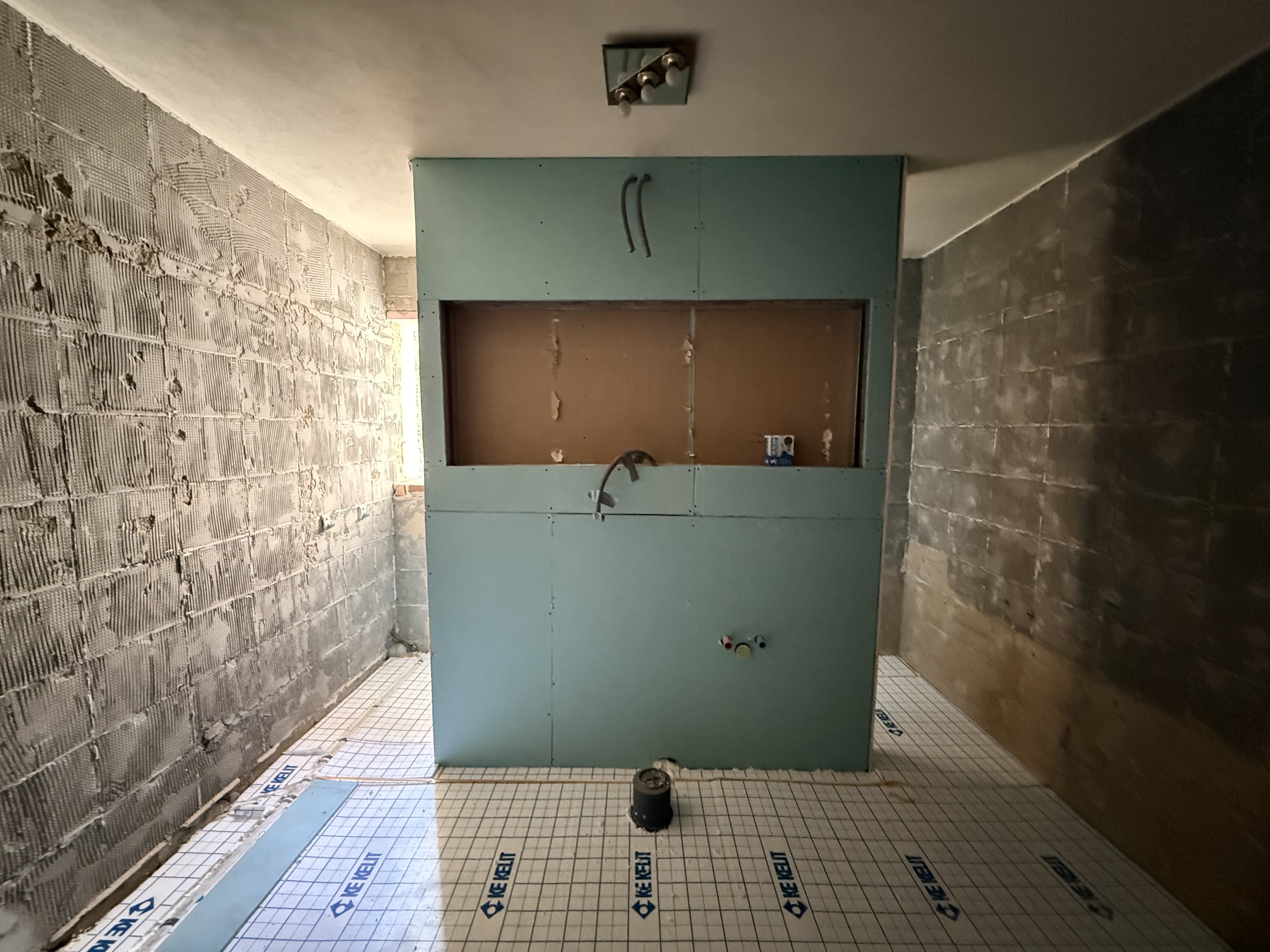 Nach der Entkernung folgte der technische Neuaufbau: Installation der Fußbodenheizung, neue Elektrik, Abdichtung nach ÖNORM, Vorbereitung der Vorwände sowie Fliesenvorbereitung. Dieser Schritt legt die Grundlage für Langlebigkeit und Komfort.